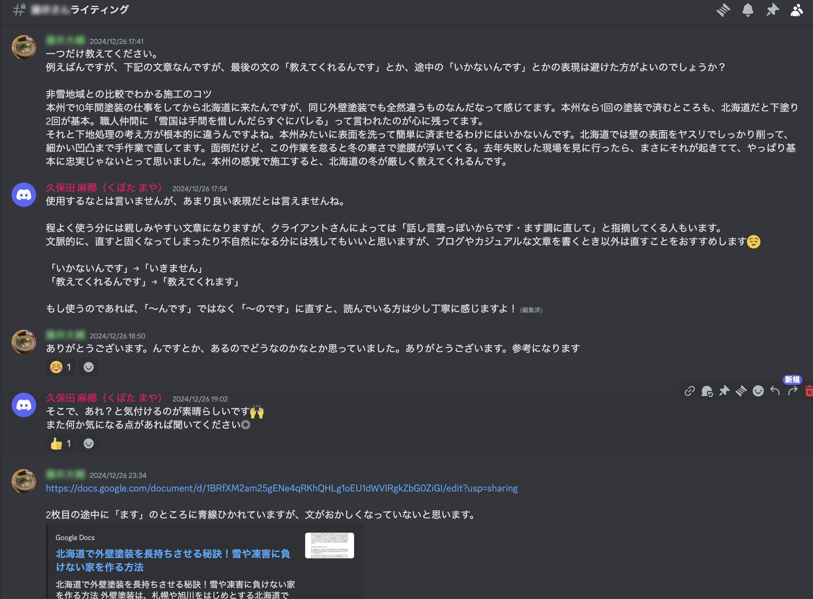 AI、ライティング、ともに初心者の私でも、担当講師の方が本当に丁寧に教えてくださり、分からないことも気軽に質問できる雰囲気でした。